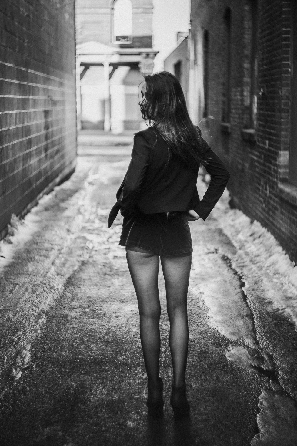 It was so cold outside the day that Sarah and I went for photo session. She left her jacket in her car and performed like a pro! I hadn't photographed a solo portrait session and a while and needed to ease my way back into photography. So when I saw Sarah on social media killing it at the modeling game I reached out to her and asked if she'd be interested in doing a portfolio-building session. She said yes, which led to us being outside in the frigid air. I don't know how long we were outside for, and I honestly felt so bad that it was cold that I tried to rush the session a bit so she could warm up in her car. I had a super fun time and I learned a bit about her, ie. we both have significant others in the military, and we have/had adorable babies (mine's not such a baby anymore lol).